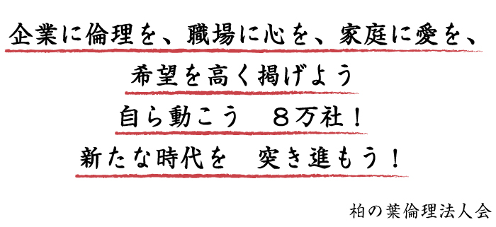倫理法人会では「企業に倫理を、職場に心を」をスローガンにしています。